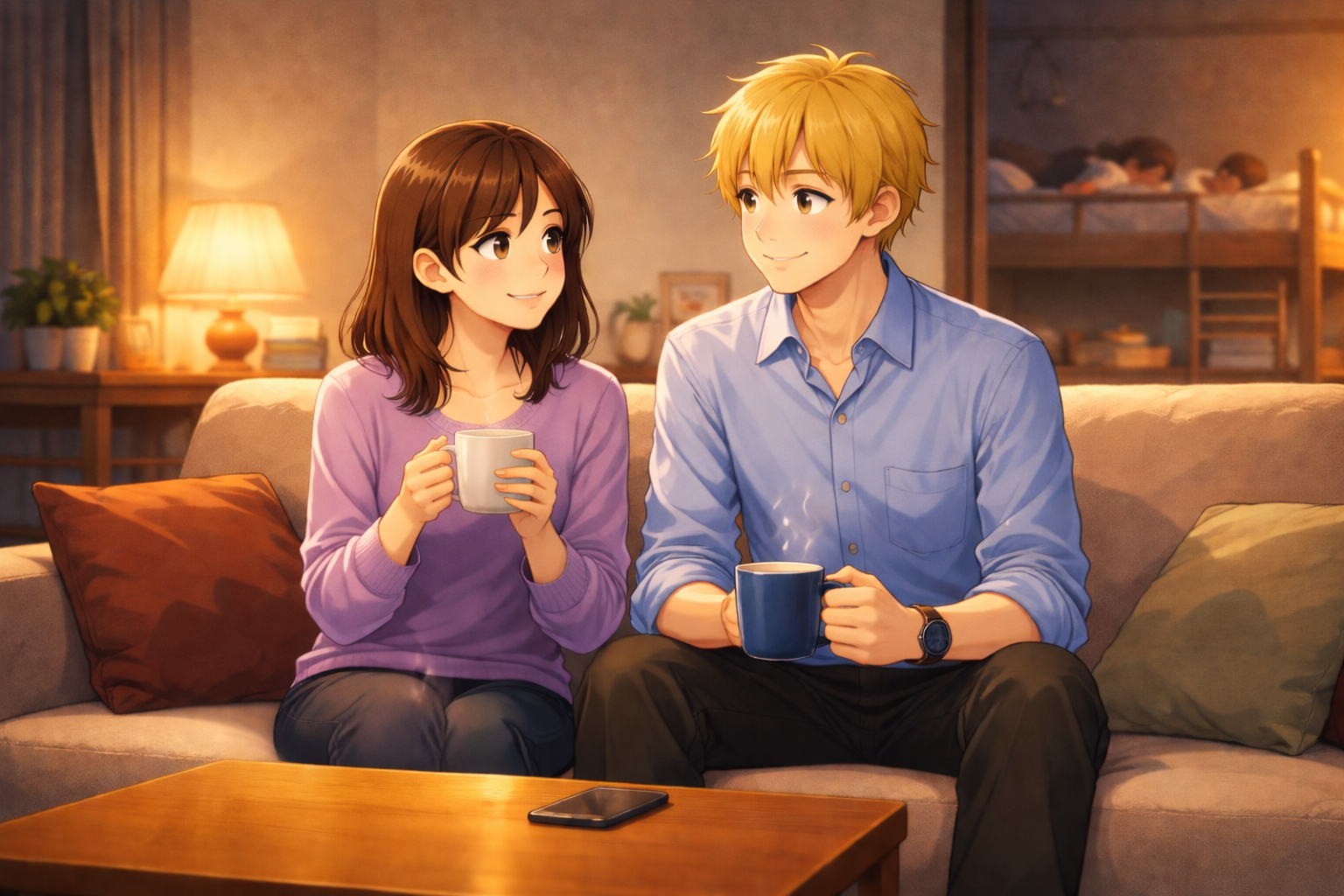(After dinner. The children are already asleep.)