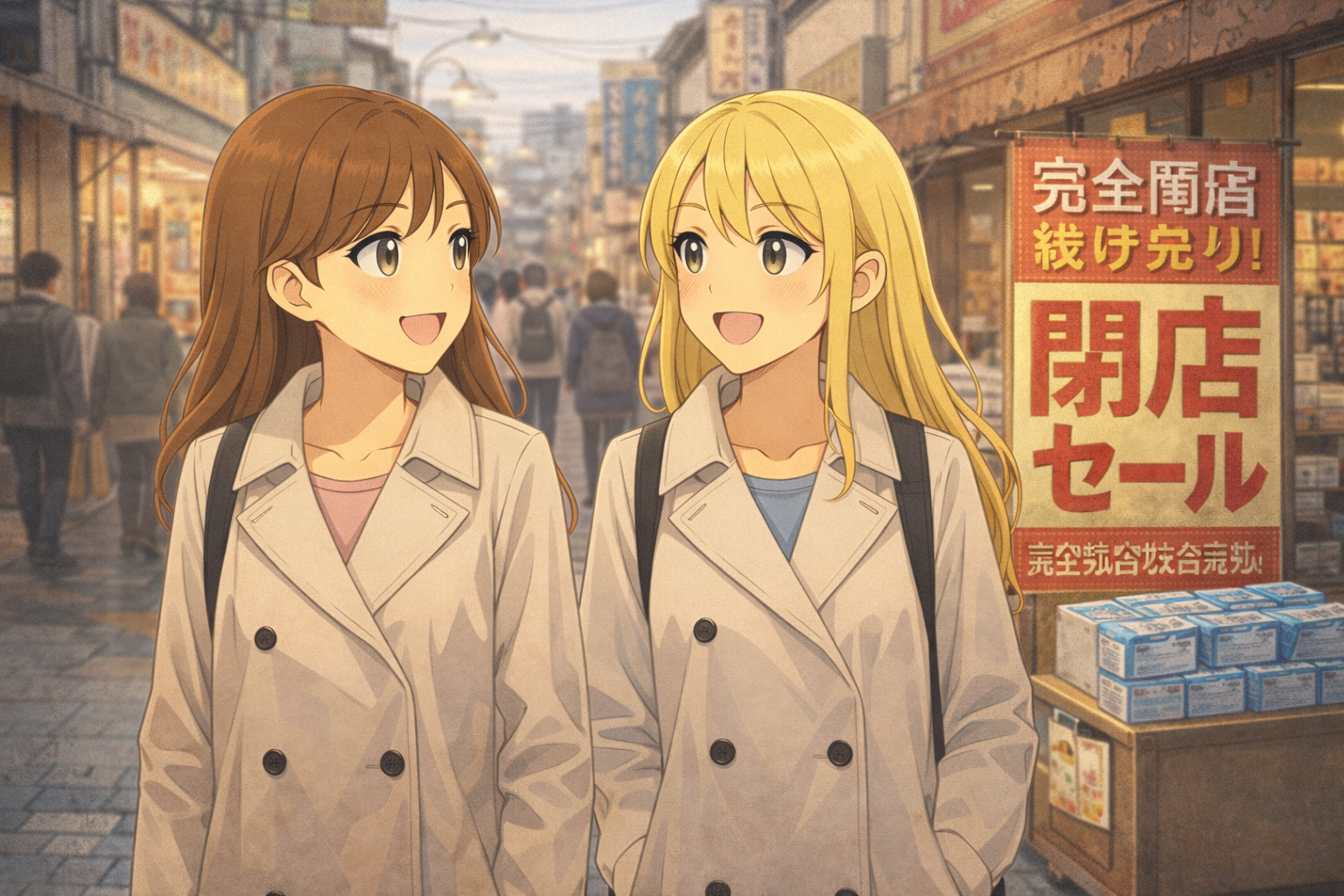 (In the neighborhood shopping street.)