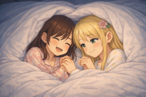 私たちはまだ一人の部屋をもらえていない。布団が並ぶ夜。